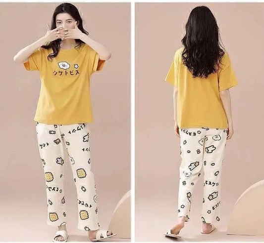 Yellow Printed Capri Night Suit